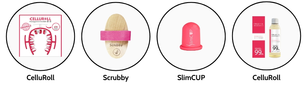 CelluOil (quando usi SlimCUP e CelluRoll e anche dopo la doccia): la sua formulazione vegana a base di Pepe Rosa Brasiliano e Argan è perfetta per un massaggio anticellulite con SlimCUP e CelluRoll, ma anche "a mani nude" subito dopo la doccia, quando hai le gambe ancora umide.